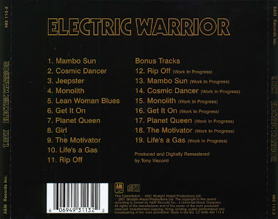 T. Rex (originalmente conhecida como Tyrannosaurus Rex), era uma banda de Rock inglesa formada por Marc Bolan. Foi fundada nos anos 60 como um duo de folk rock, mas encontrou o sucesso nos anos 70 como uma banda de glam rock com os hits "; Get It On", "Ride A White Swan", "20th Century Boy", "Children of the Revolution", "Hot Love", "Telegram Sam" e "Metal Guru". Electric Warrior, seu sexto álbum de estúdio, é largamente considerado como um dos principais lançamentos do glam rock britânico. Alcançou o número trinta e dois nos EUA, enquanto foi o número um por várias semanas no Reino Unido, tornando-se o álbum mais vendido de 1971. Em 2003, foi classificado com o número 160 na Lista dos 500 melhores álbuns de sempre da Revista Rolling Stone.